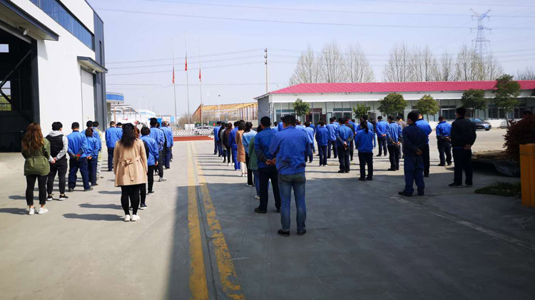 4月4號10.00整我們福瑞德機(jī)械員工自覺的集合,表情莊嚴(yán)肅立,集體默哀三分鐘。伴隨著準(zhǔn)時(shí)想起防空警報(bào),我們?nèi)w員工送去了對逝者的思念,3分鐘讓我們思考太多太多我們福瑞德全體員工放下手中的工作,集體列隊(duì),希望他們一路走好。