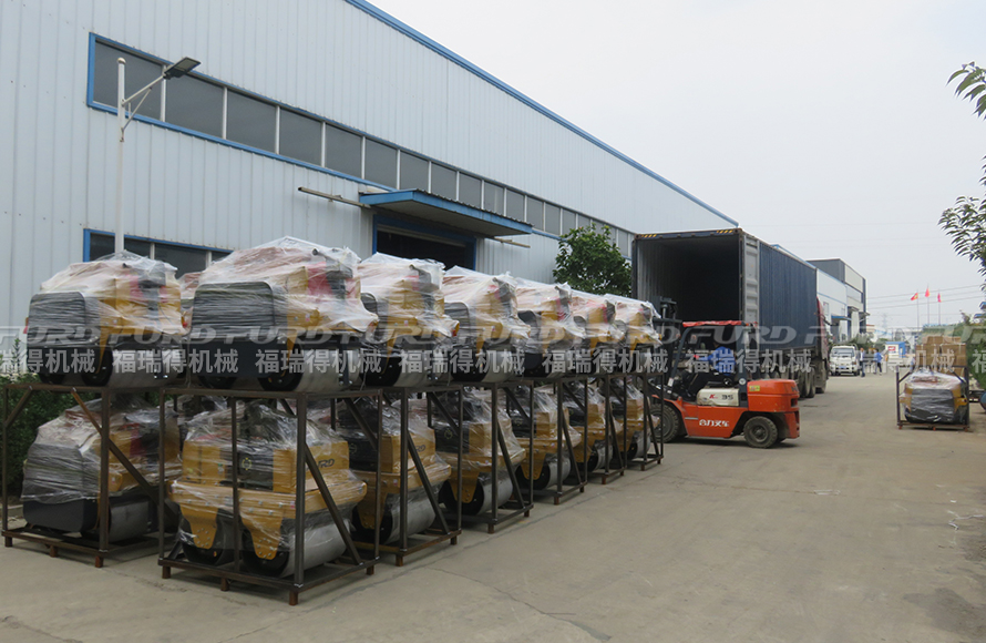 10月25日,福瑞得機械46臺手扶雙鋼輪壓路機裝車出口墨西哥。