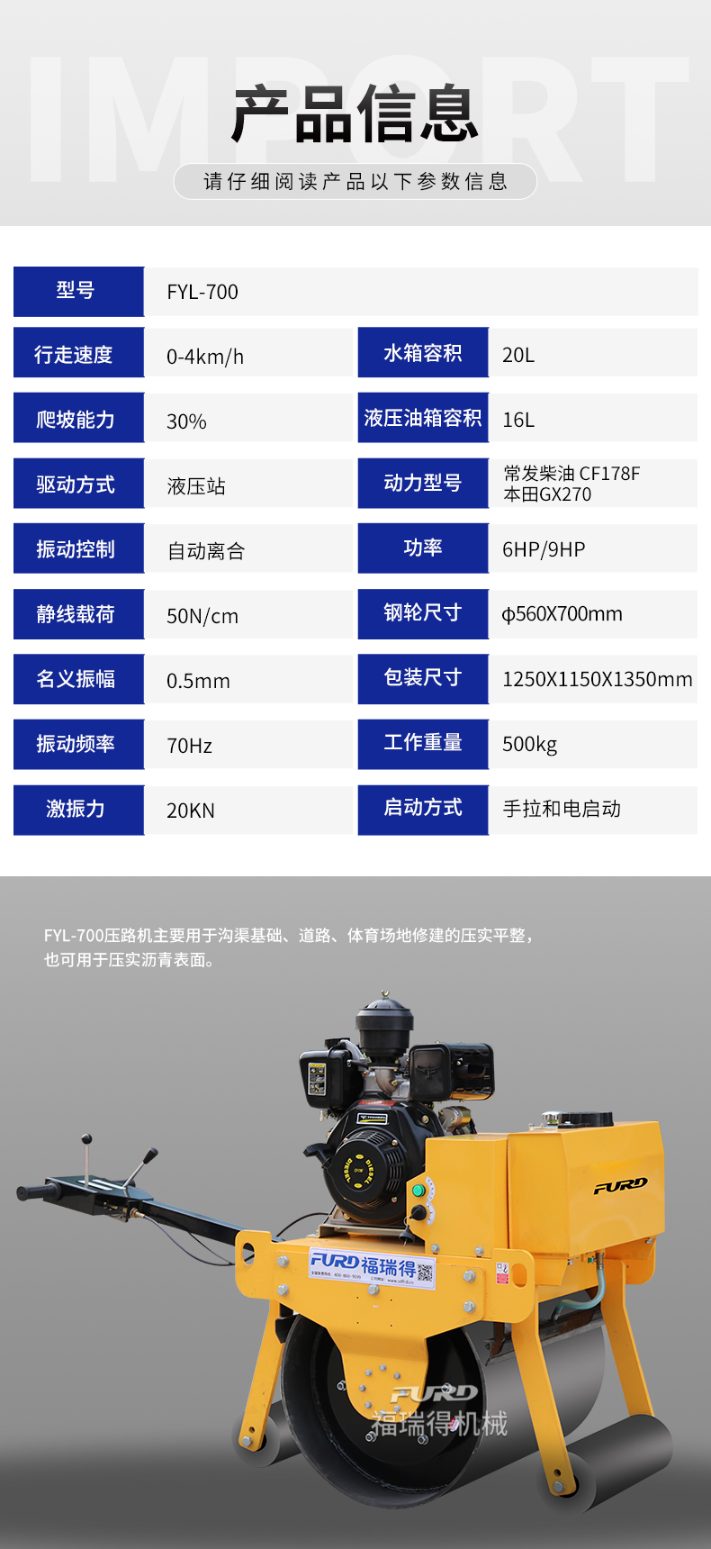 FYL-700 小型手扶式單輪壓路機(jī)