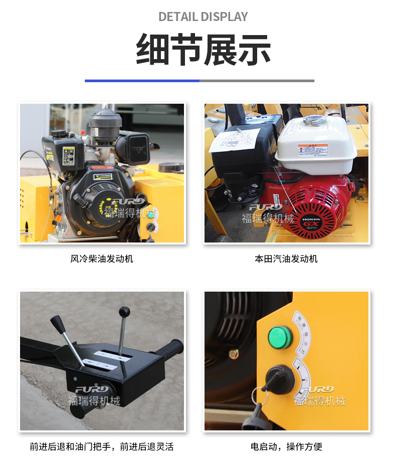 主要用于溝渠基礎(chǔ),道路,體育場(chǎng)地的壓實(shí)整平, 也可用于壓實(shí)瀝青表面的作業(yè)。