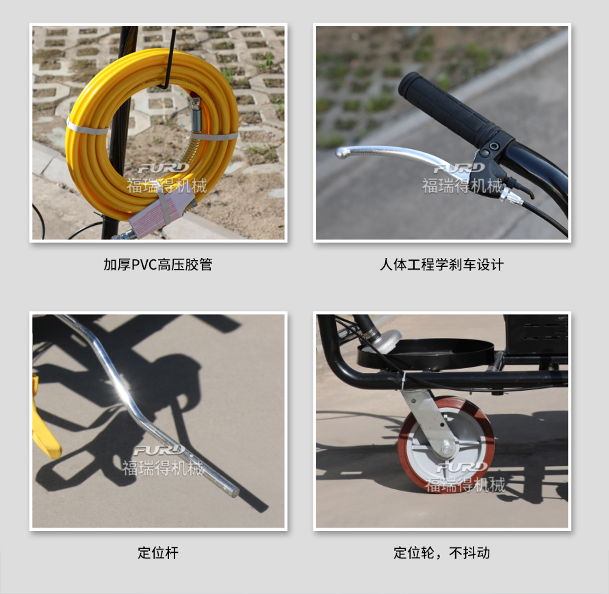 小型手推式道路劃線機(jī)是一種在道路、停車場(chǎng)、廣場(chǎng)和跑道等平整地面上劃出不同約束、指引和警示等規(guī)則限制標(biāo)志的路面施工機(jī)械。最常見的就是在馬路上劃斑馬線,在路上劃車庫(kù)線、停車線等等應(yīng)用于小型工程、短途施工,活動(dòng)方便,靈活操作。