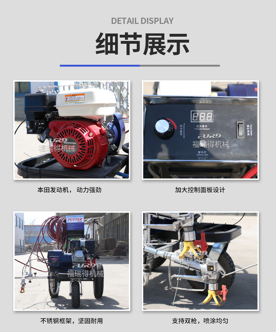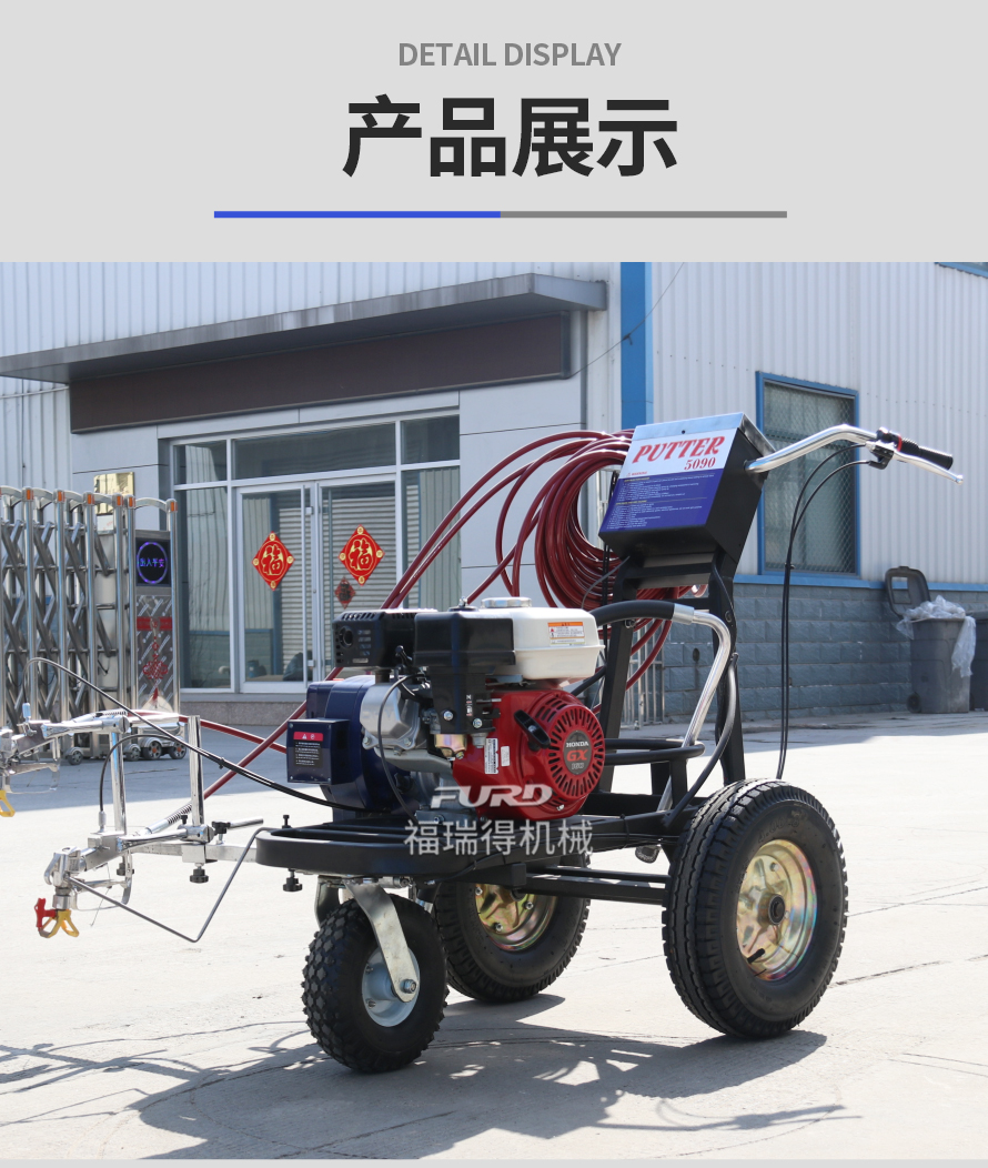 小型手推式道路劃線機(jī)是一種在道路、停車場、廣場和跑道等平整地面上劃出不同約束、指引和警示等規(guī)則限制標(biāo)志的路面施工機(jī)械。最常見的就是在馬路上劃斑馬線,在路上劃車庫線、停車線等等應(yīng)用于小型工程、短途施工,活動方便,靈活操作。