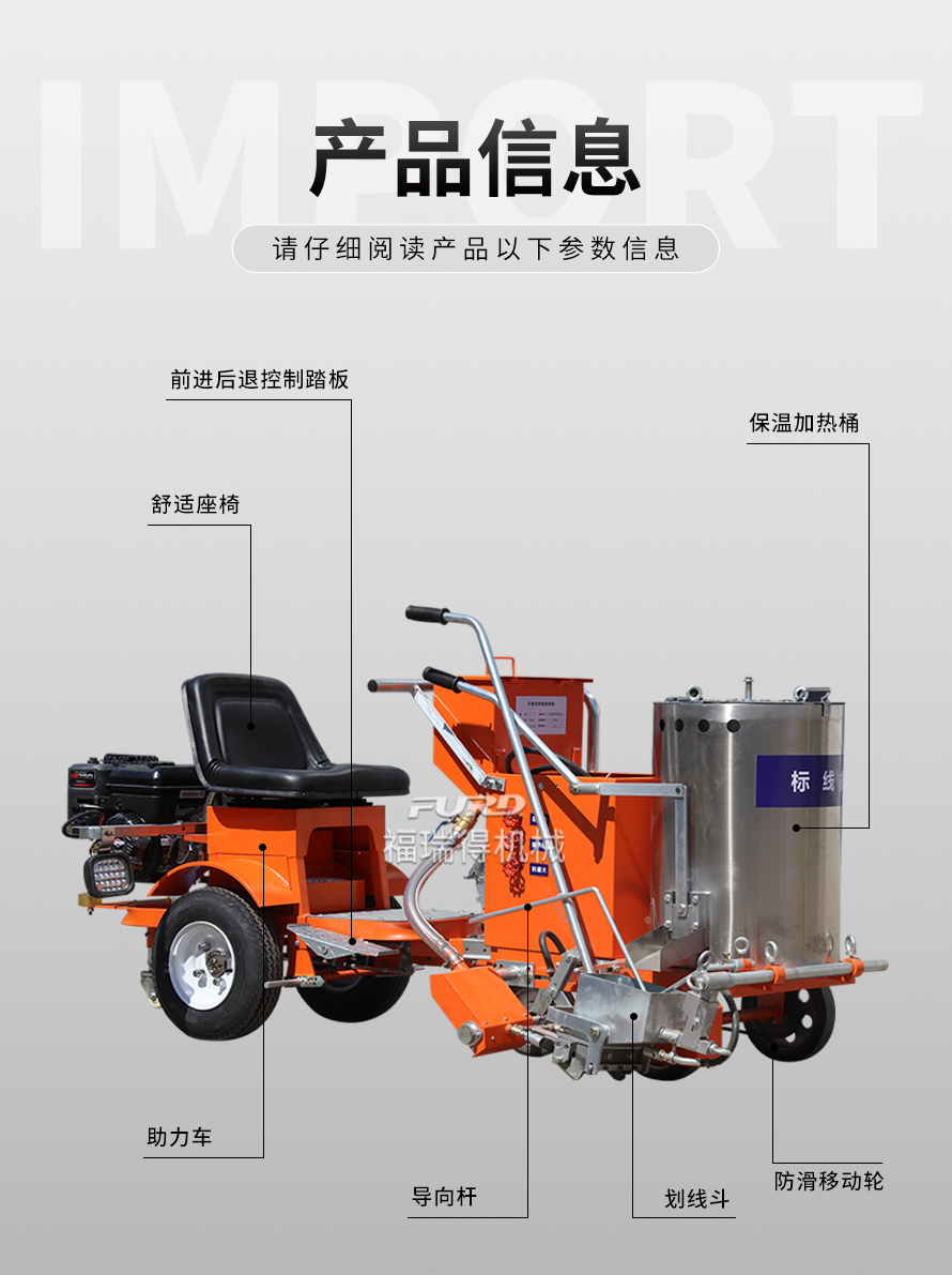 應(yīng)用于道路、高速公路、停車場、廣場和跑道的在平整地面上劃出不同約速、指引和警示等規(guī)則限制標(biāo)志的路面施工機(jī)械。
