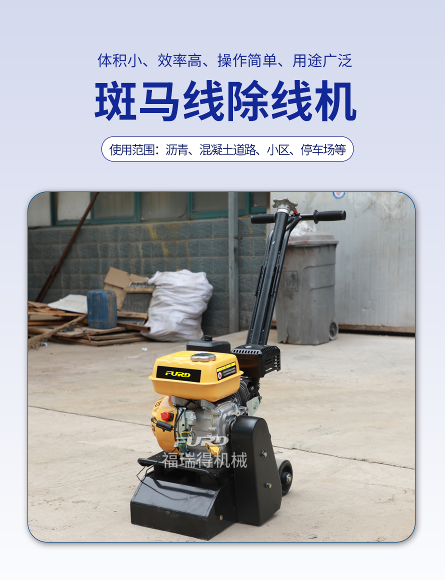 特點:體積小、重量輕、機動靈活、工作效率高、操作簡單。 適應范圍:主要用于瀝青道路、混凝土道路、物業(yè)小區(qū)、機場、停車場等地的標線清除。