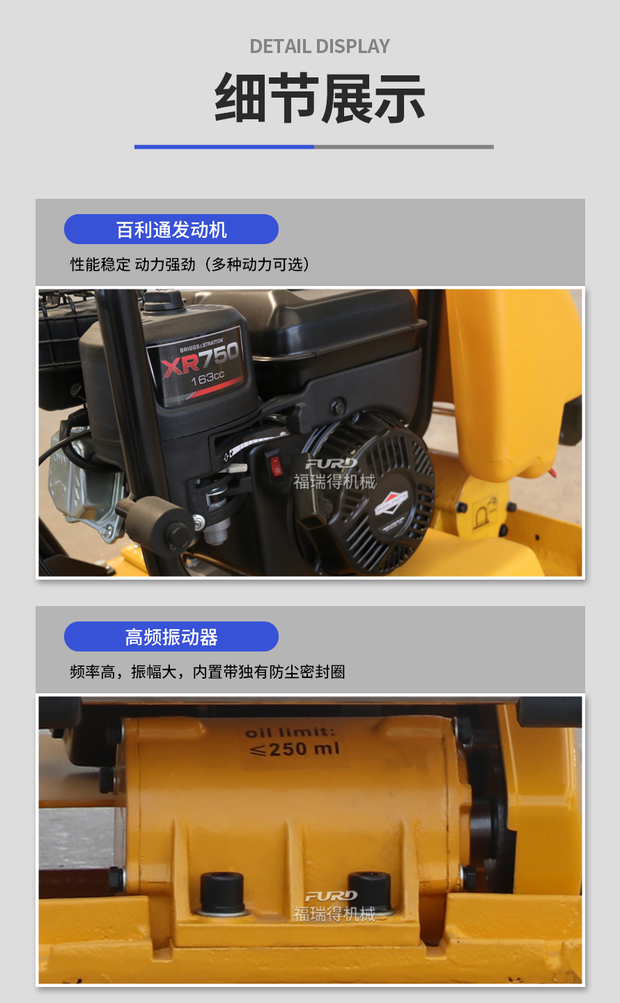適用于路基邊緣、橋涵、管道、溝槽底部等狹長(zhǎng)地帶的壓實(shí)。 本田汽油動(dòng)力,名牌品質(zhì)保證。