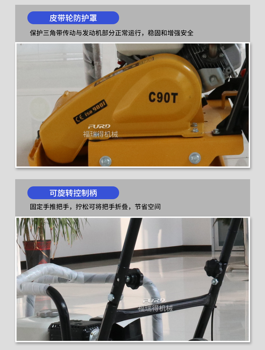 適用于路基邊緣、橋涵、管道、溝槽底部等狹長地帶的壓實。 本田汽油動力,名牌品質(zhì)保證。