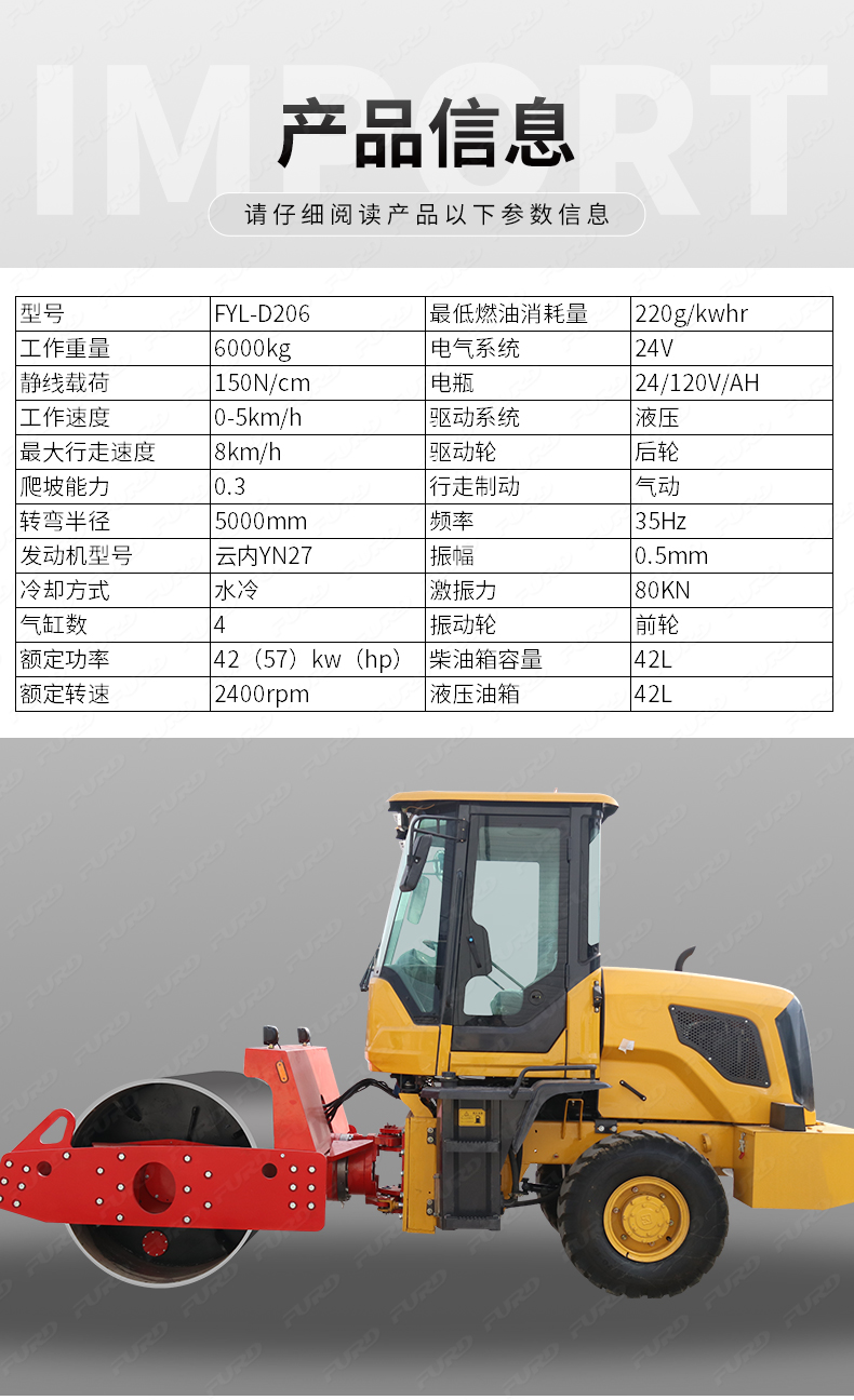 FYL-D206 6噸重型單鋼輪壓路機(jī)