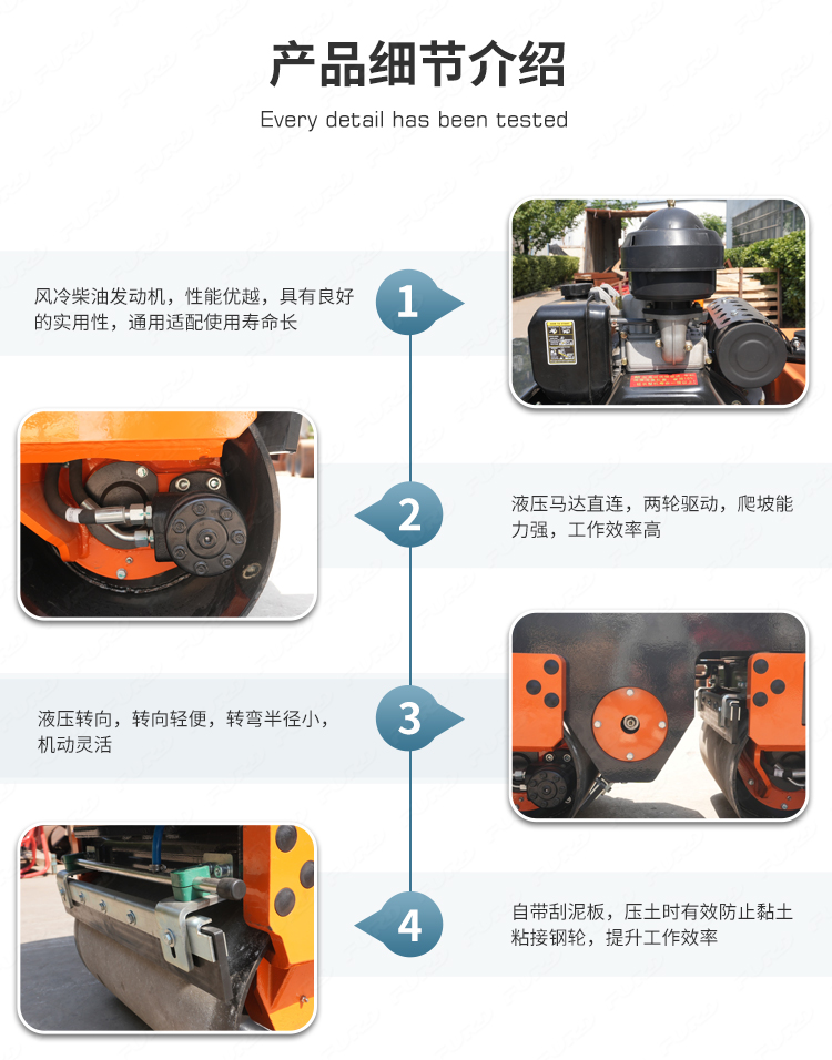 FYL-800是800kg液壓轉(zhuǎn)向壓路機(jī),采用重型變量柱塞泵,液壓馬達(dá)驅(qū)動(dòng)變速行走,電磁離合器振動(dòng)。