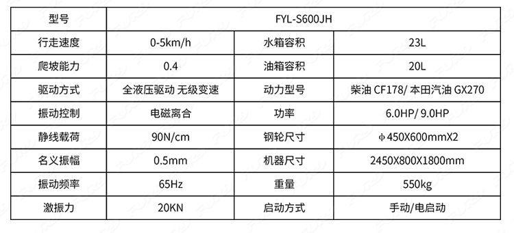 FYL-S600JH 手扶靜液壓雙鋼輪振動壓路機(jī)